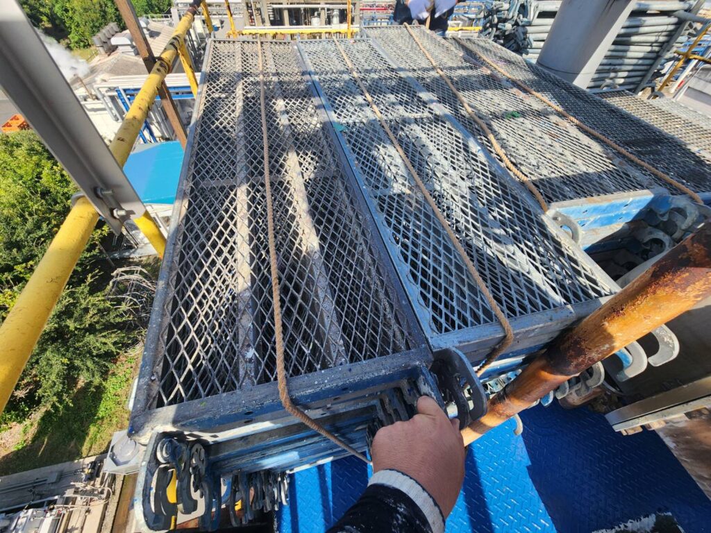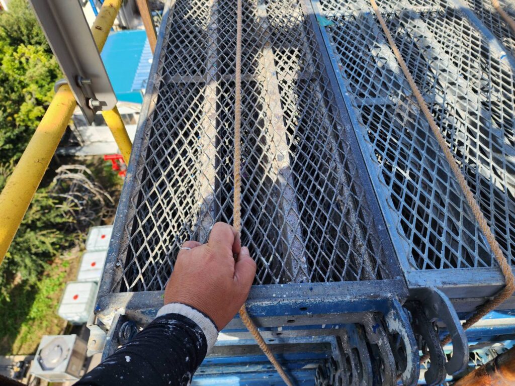 足場本体の部材が緩んでいないか、金具のゆるみや変形がないか点検します。