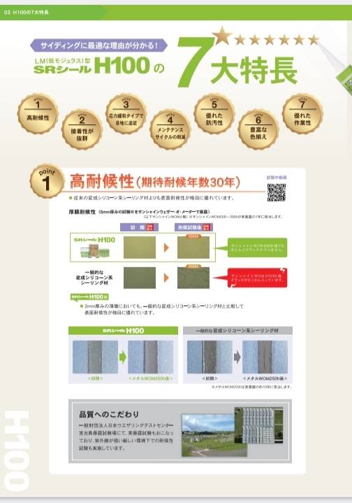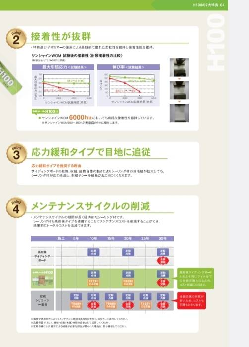 高耐候・接着耐久性・応力緩和性全てを兼揃えているH100は、四季折々の厳しい環境に対応します。