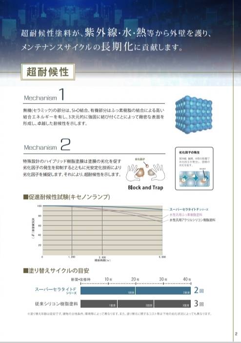 スーパーセラタイトFシリーズは、無機合ふっ素により超耐久性を示すとともに