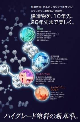 「無機」と「有機」の特性を最大限に発揮させ従来の最高位グレード「フッソ樹脂塗料」を超越。