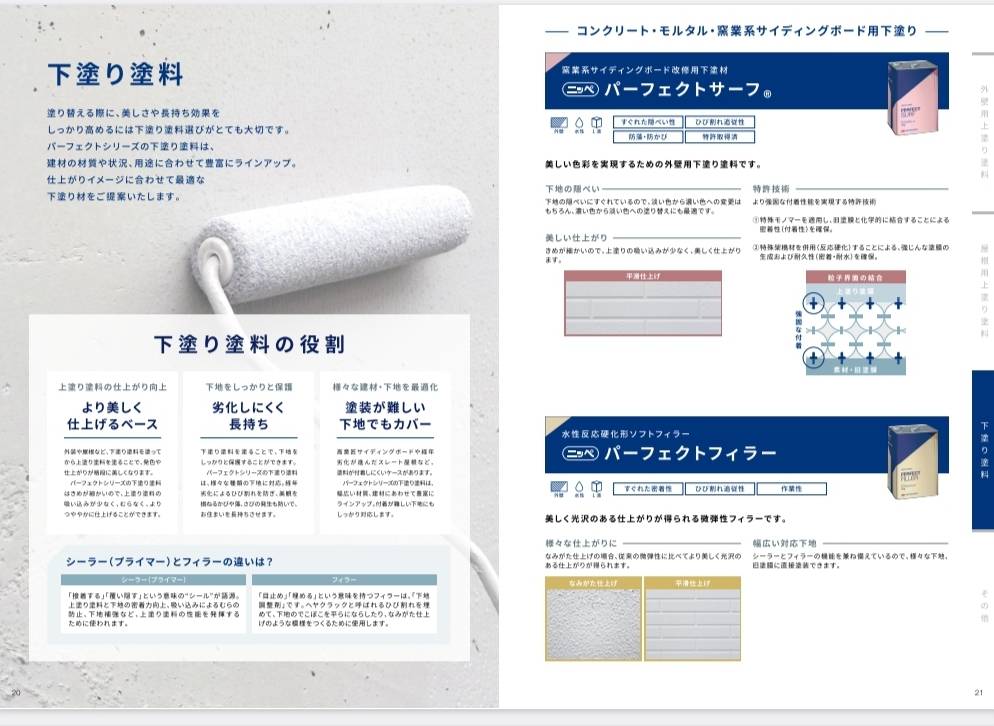 塗料のレオロジーコントロールによりレベリング性に優れる滑らかな塗膜は従来の弱溶剤形塗料と比べ、優れた仕上がり性/光沢を提供します。特に、戸建てサイディングの塗り替えでは、下塗りに「水性SDサーフェポプレミアム/マイルドSDサーフェポプレミアム」をご使用いただくことで、相乗効果により優れた仕上がり性を示します。