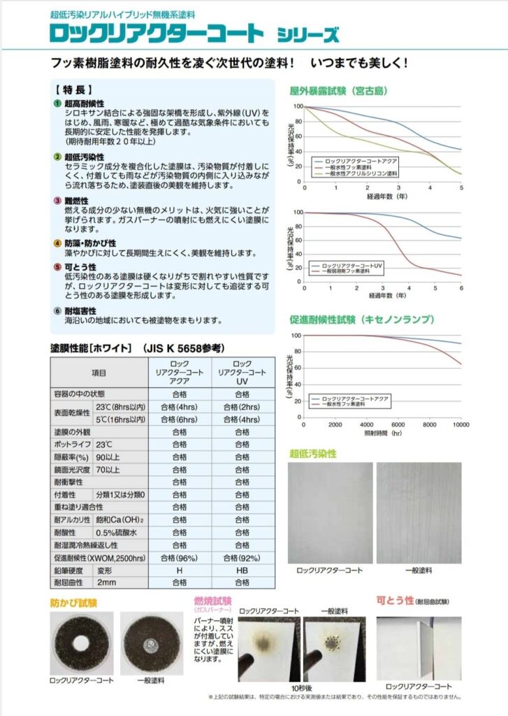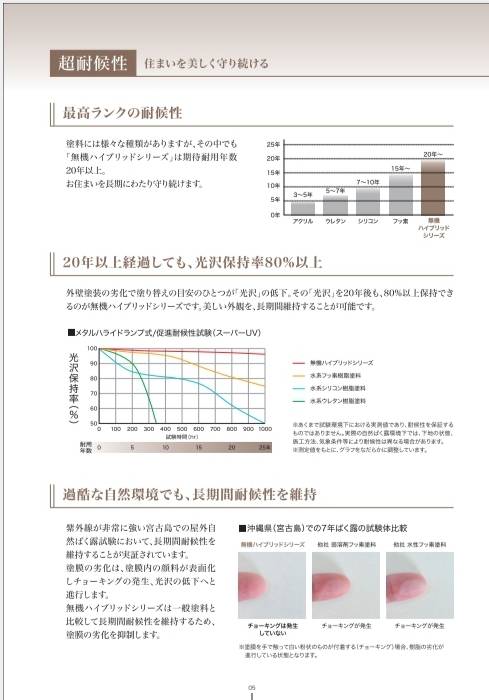 無機ガードZと同じ無機有機ハイブリッド脂を使用しているのでフッ素樹脂を上回る耐候性を発揮します。