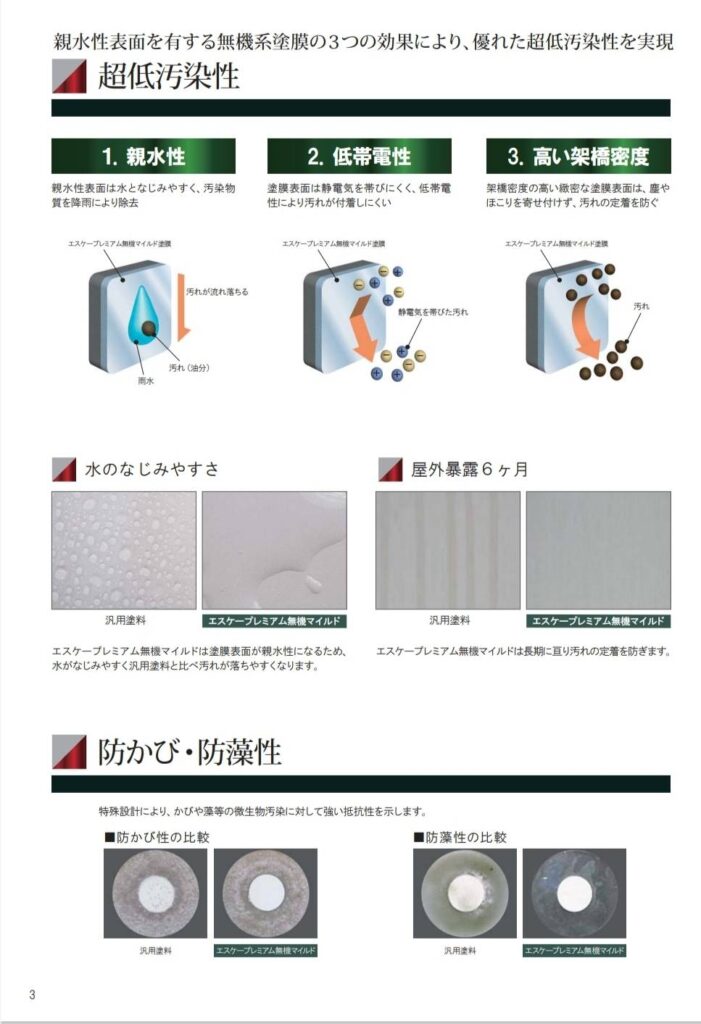 燃える成分の少ない無機のメリットは、火気に強いことが挙げられます。ガスバーナーの噴射にも燃えにくい塗膜になります。 - 防藻・防かび性