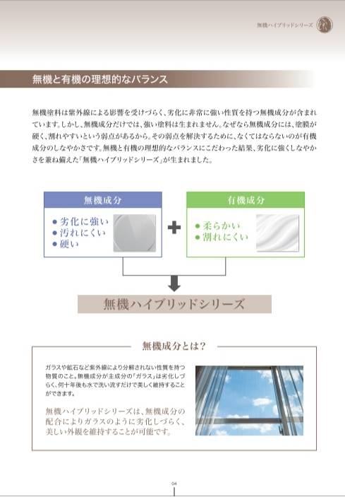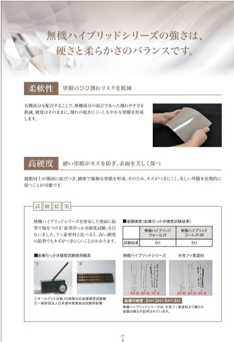 無機と有機の理想的なバランスにこだわった結果、劣化に強くしなやかさを数ねえた「無機ハイブリッドシリーズ」が生まれました。