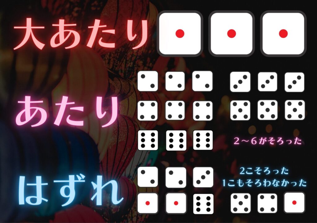 サイコロを3個🎲🎲🎲転がして、同じ数字を揃えていただくゲームです。