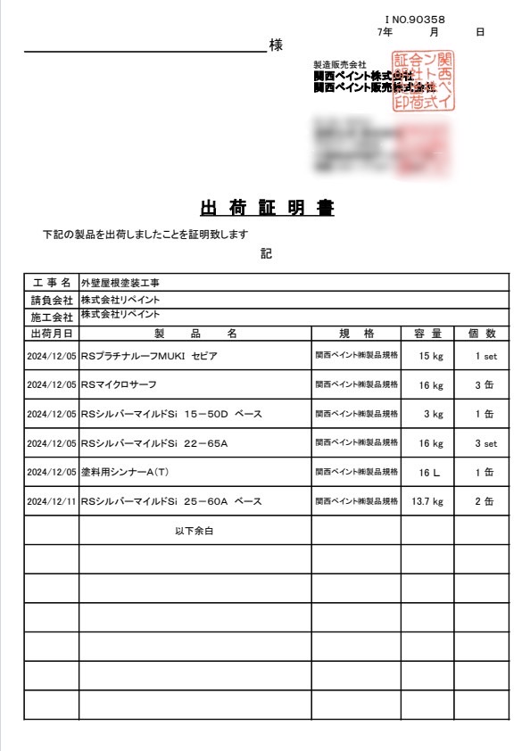 関西ペイント㈱製品規格 13.7 kg 2缶