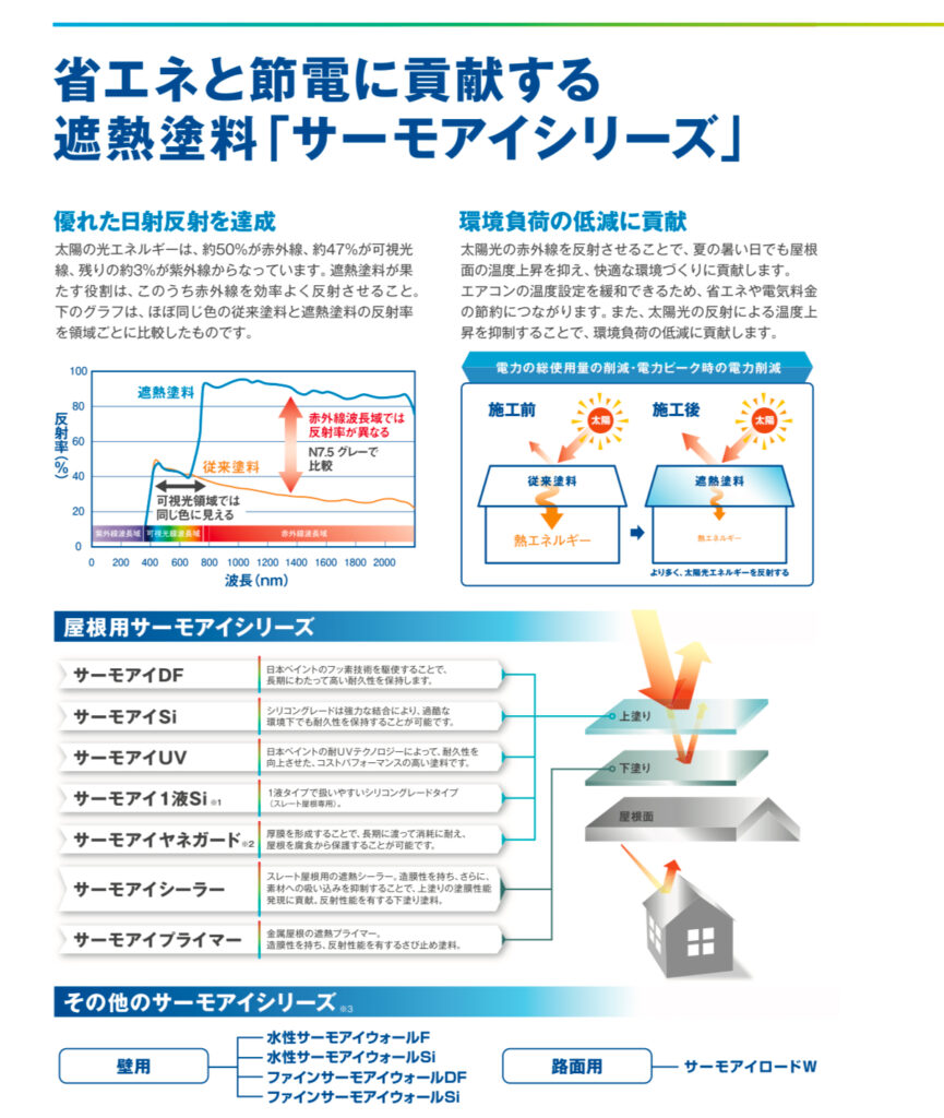 日本ペイントの遮熱塗料「サーモアイシリーズ」は、