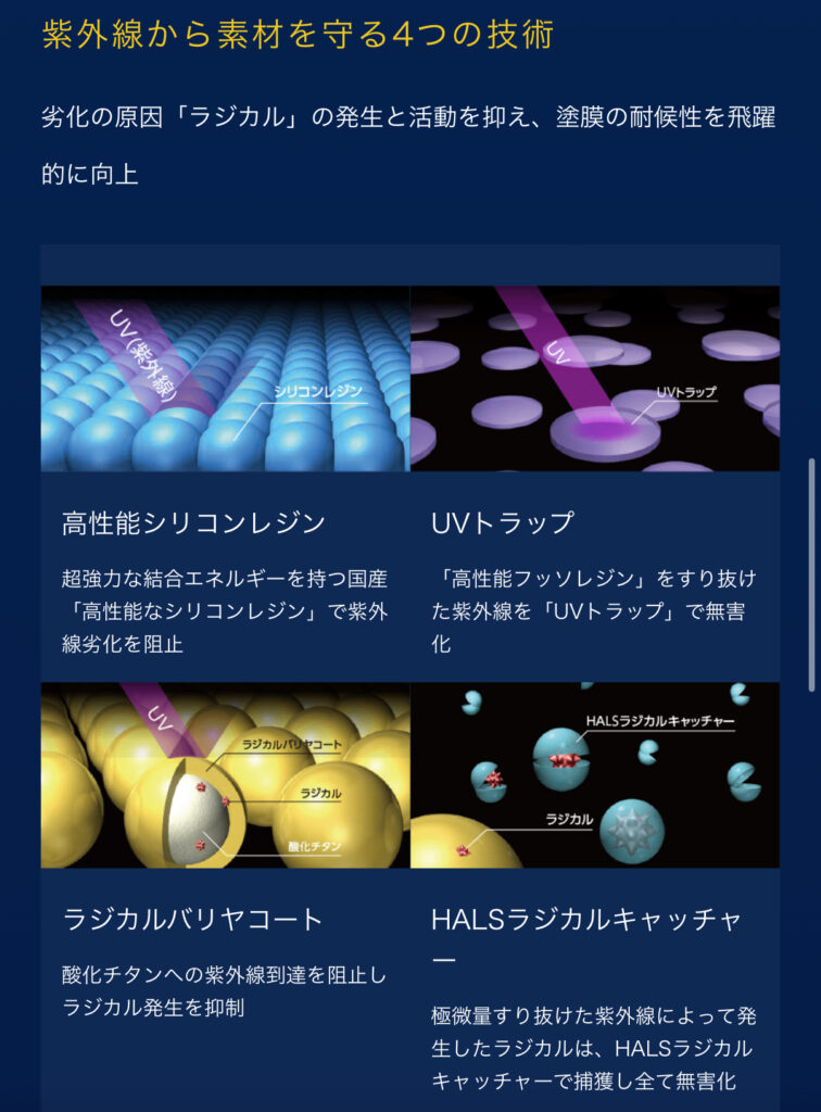 劣化の原因「ラジカル」の発生と活動を抑え、塗膜の耐候性を飛躍的に向上