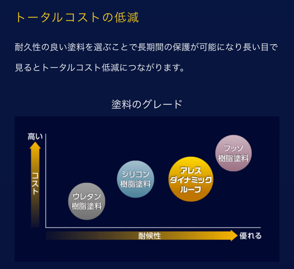 耐久性の良い塗料を選ぶことで長期間の保護が可能になり長い目で見るとトータルコスト低減につながります。