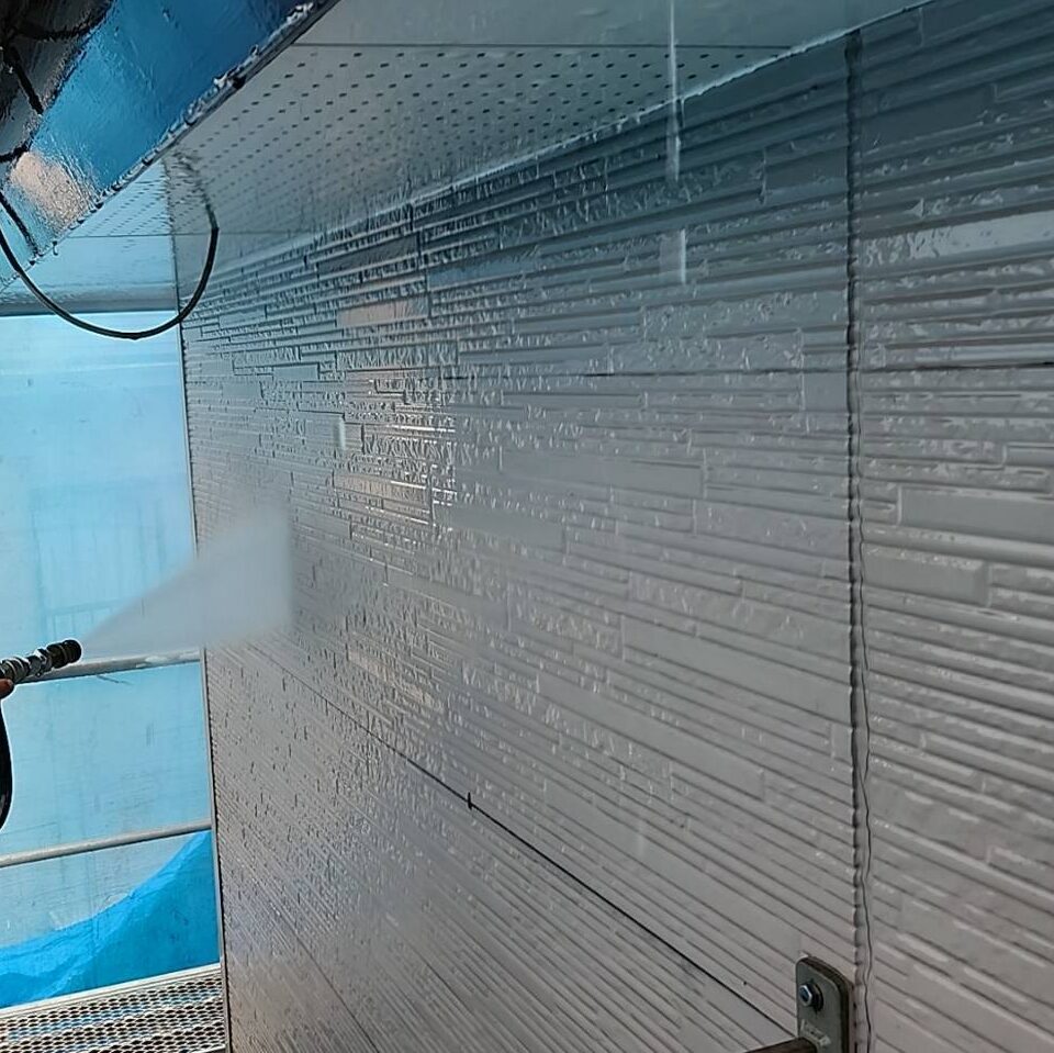 外壁塗装前に行う、高圧洗浄。