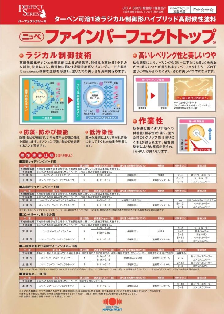 また、パーフェクトシリーズ下塗りと の組み合わせによりさらに美しい外観が得られます。