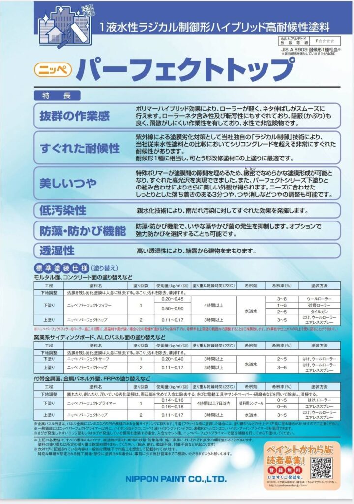 仕上がりにすぐれたパーフェクトシリーズの上塗り塗料