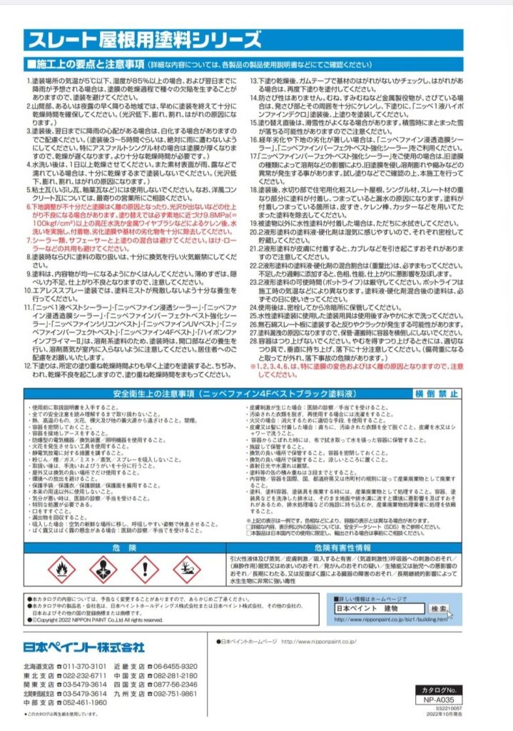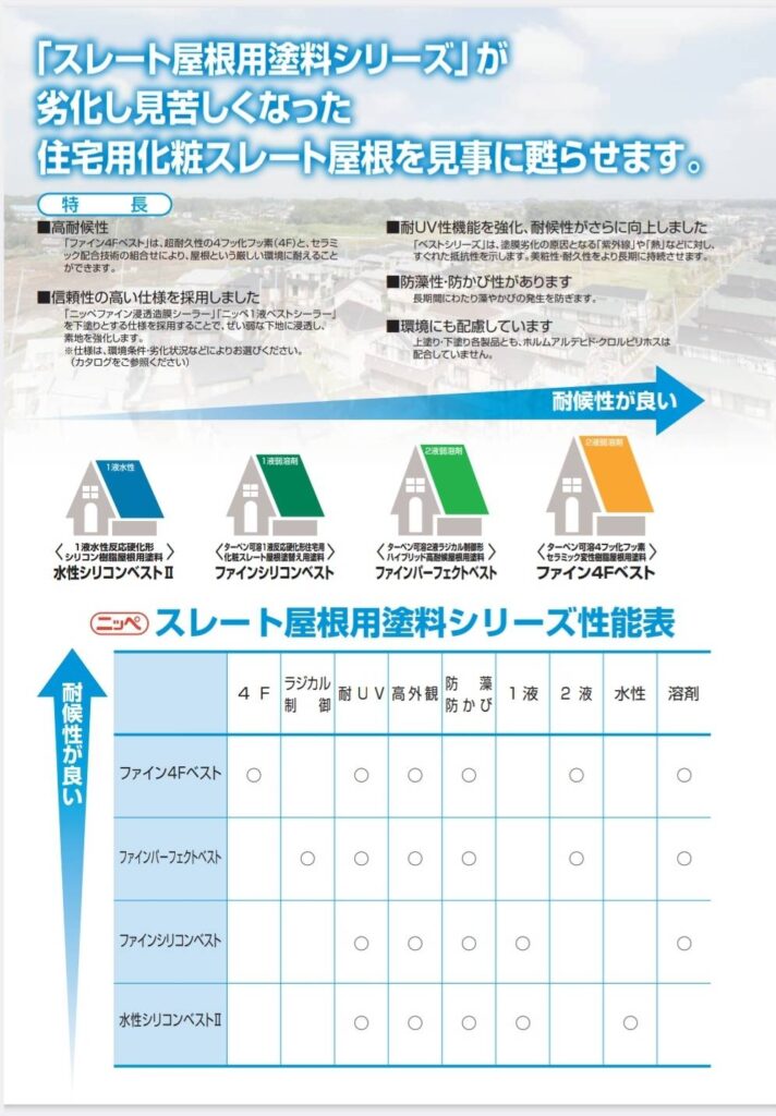 住宅用化粧スレート屋根塗り替え用塗料です。弱溶剤タイプの塗料です。