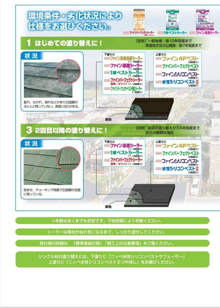「1液ベストシーラー」を下塗とする仕様を採用することで、弱溶剤形ならではの密着力が、脆弱な下地に浸透し素地を強化します。