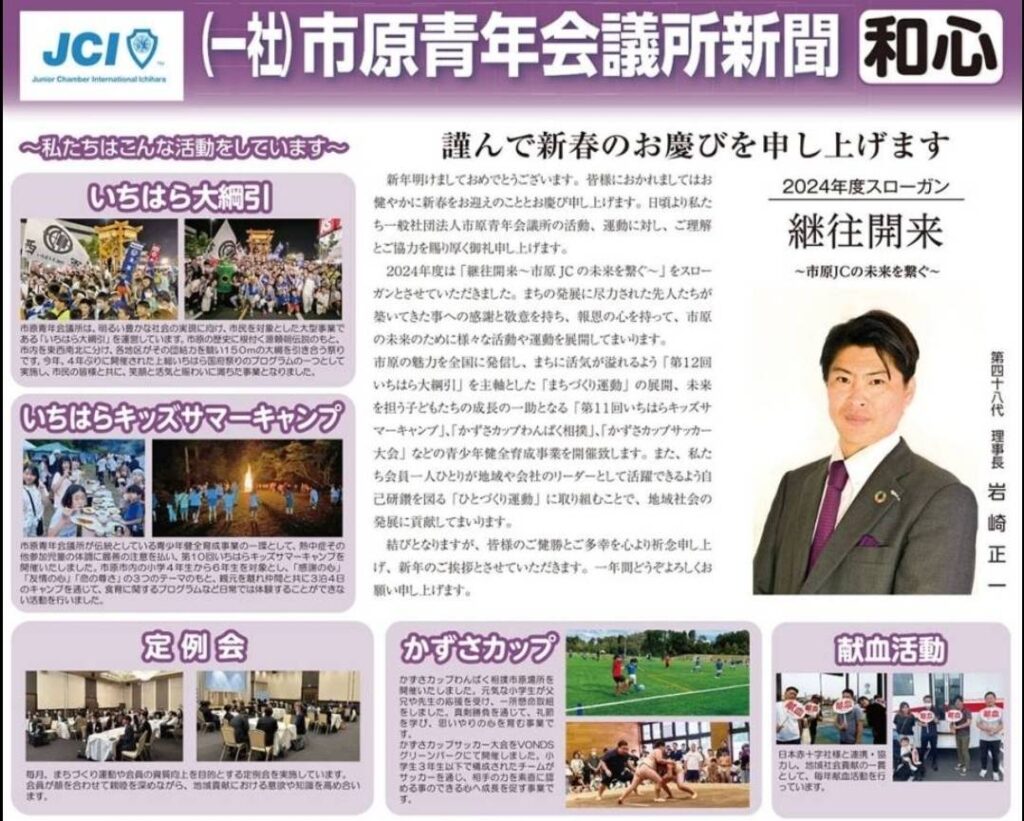 一般社団法人 市原青年会議所新聞 和心 シティライフ掲載 JCIの活動を少しお話しさせていただきたいと思います。 2024年度スローガン 継往開来 〜市原JCの未来を繋ぐ〜 本年度第48代 理事長職をお預かりしております。 精一杯努めさせていただきま...