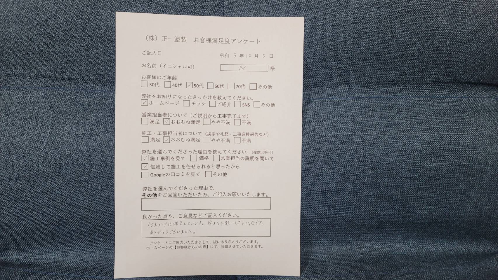 お客様アンケート外壁・屋根塗装