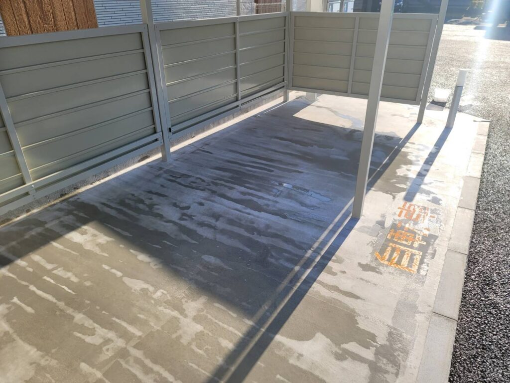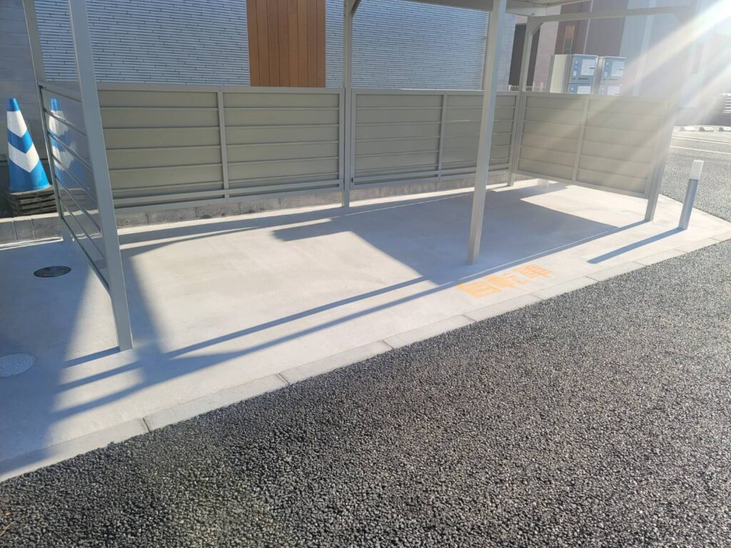 千葉県市原市アパート駐輪場🚲汚れ防止剤塗布 千葉県市原市の新築アパート駐輪場、駐輪場🚲のご依頼でした。 新築アパートですので、駐輪場にタイヤの跡がつかないように、汚れ防止剤を塗布させていただきました! ご依頼