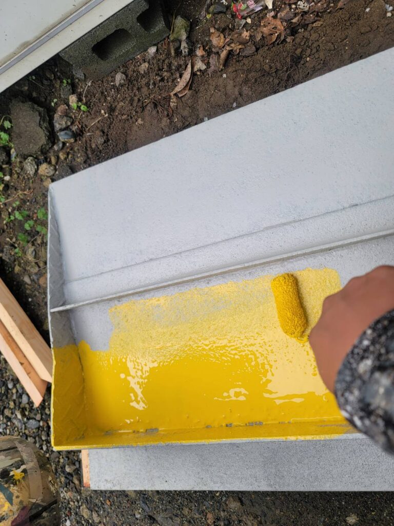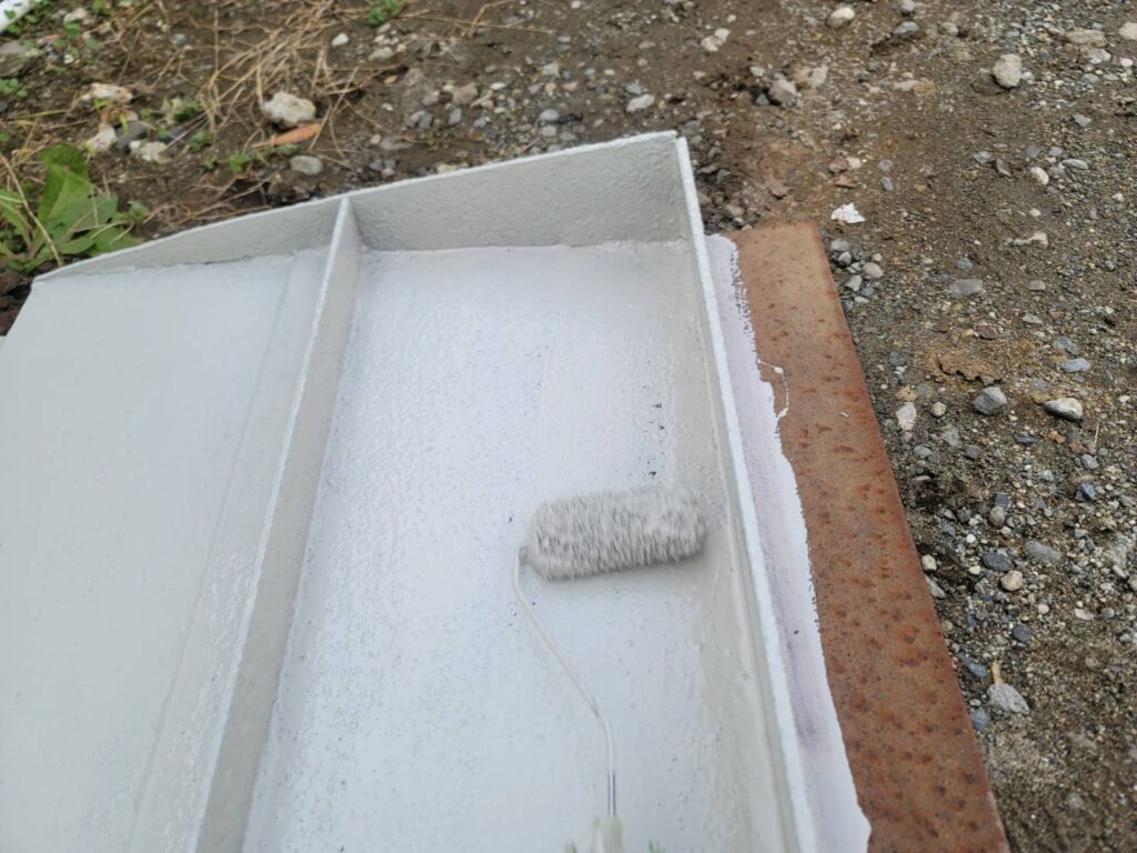 小さめローラーで、凹凸も裏側もしっかりと塗っていきます!