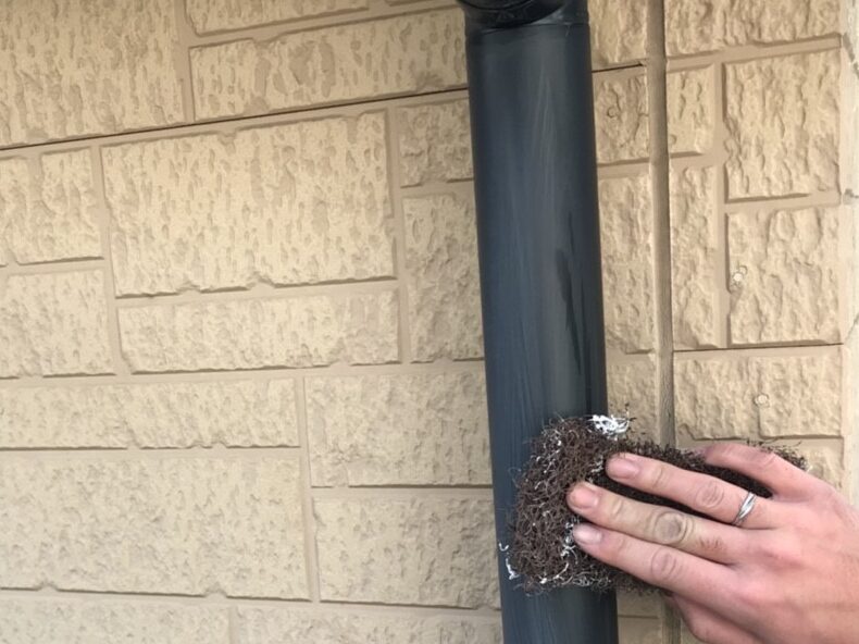 「タスペーサー工法」では、塗装工程の前に「タスペーサー」を挿入します。