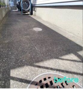 玄関の床・駐車場・カーポート・フェンスなどの、高圧洗浄の様子です。